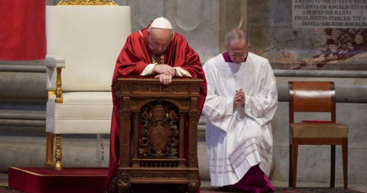 El acto comenzó con el papa Francisco tendido durante unos minutos orando ante el altar papal, bajo el que se cree que reposan los restos de San Pedro.