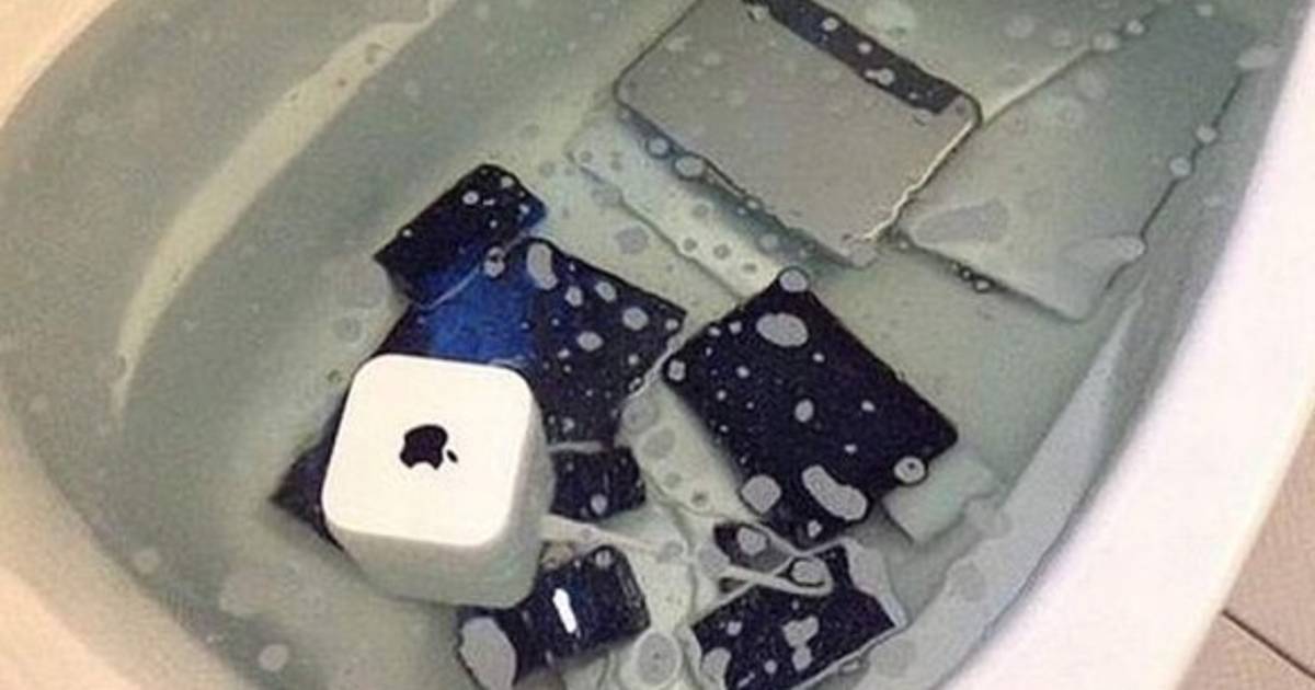 Una joven enamorada se vengó de su pareja infiel lanzando su colección de productos Apple en la bañera. La imagen de la vendetta fue publicada en Twitter por @foolishnessfly2.