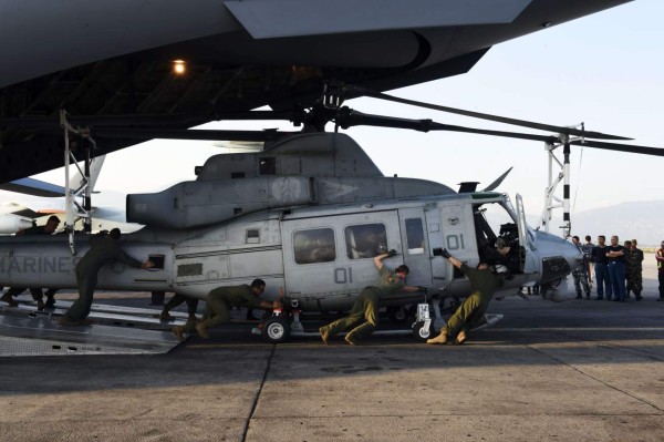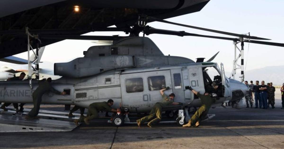 Más de una decena de aparatos militares estadounidenses colaboran en las operaciones de ayuda a las víctimas del terremoto, incluidos otros dos Huey, cuatro aparatos de transporte híbrido Osprey y un avión de carga.