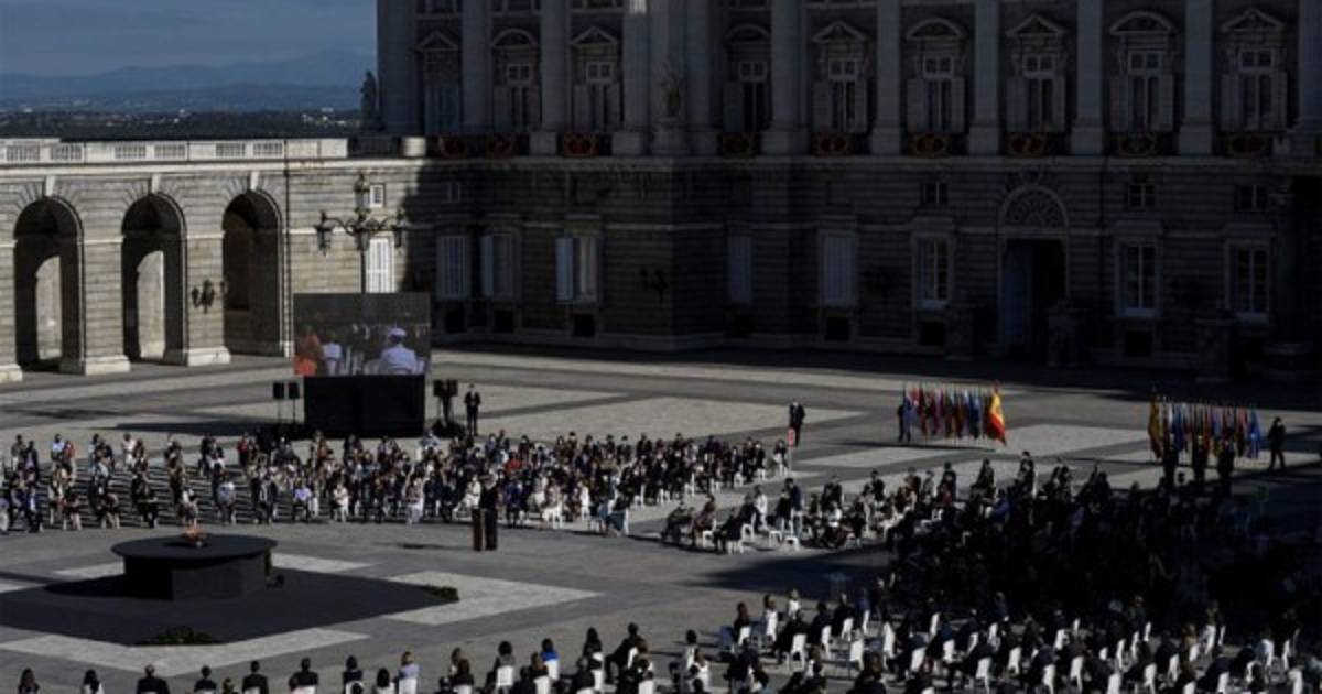 Presidida por el rey Felipe VI, la ceremonia arrancó a las 09H00 (07H00 GMT) en el patio del Palacio Real de Madrid ante más de 700 personas, entre ellas la familia real, miembros del gobierno, familiares de las víctimas y representantes del sector sanitario.