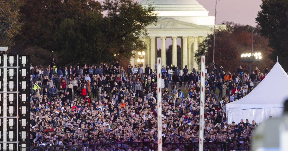 Centenares de personas se manifestaron este martes en la Explanada Nacional de Washington, a escasos metros de donde la vicepresidenta, Kamala Harris, estaba ofreciendo su mitin simbólico de cierre de campaña.