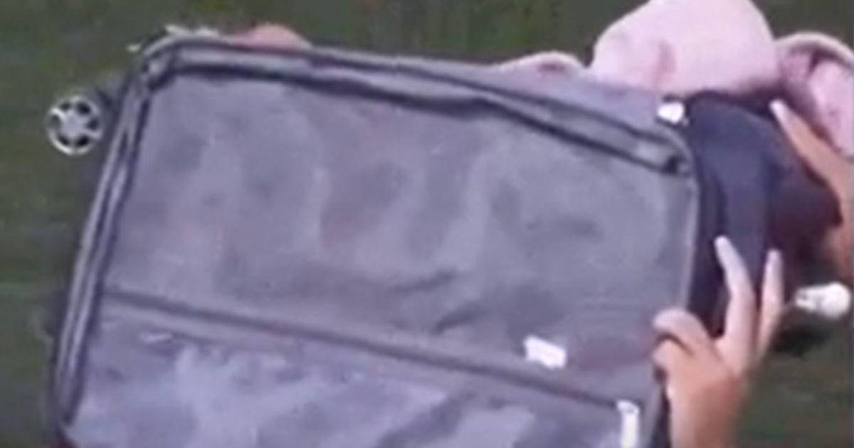 Uno de ellos llevaba sobre su cabeza una maleta con un bebé adentro.