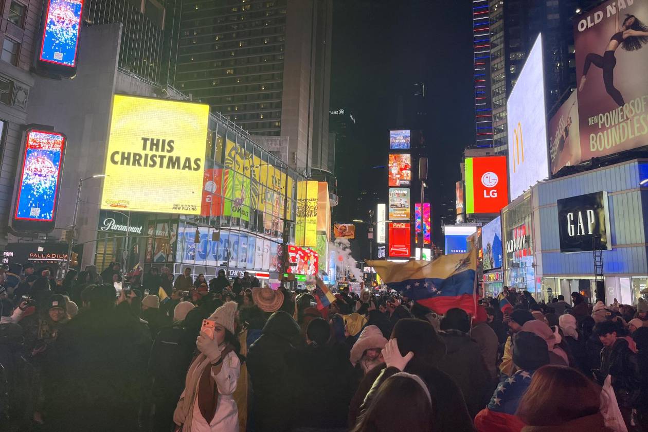 El himno de Venezuela resonó este sábado en diversos lugares de la Gran Manzana tras la detención y posterior traslado a Nueva York del mandatario venezolano, Nicolás Maduro, pero por distintos motivos: unos lo cantaron para celebrar la caída del líder y otros para pedir paz para el país suramericano.