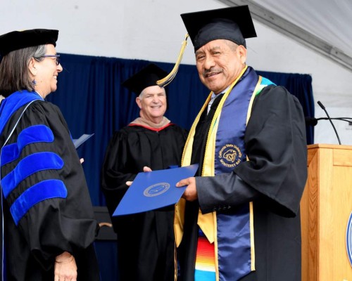 Además de su licenciatura en Español, por su 'extraordinaria labor de ayuda social en la Escuela de Adultos de Salinas' González también recibió el galardón Aprendizaje de Servicio, de CSUMB.