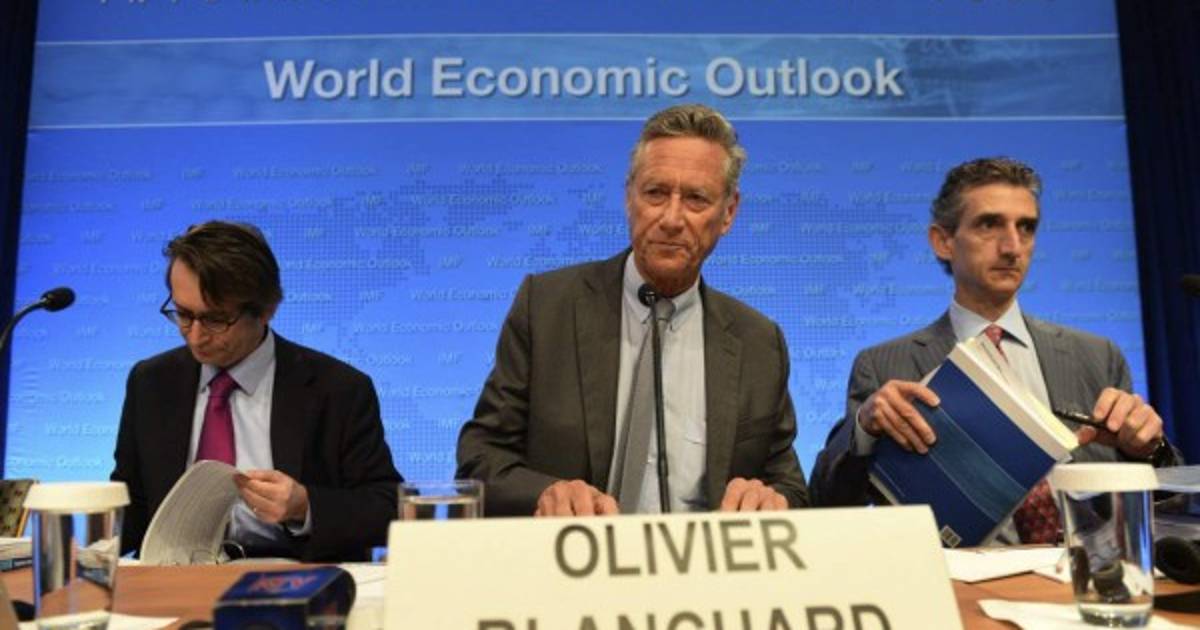 El economista jefe del Fondo Monetario Internacional (FMI), Olivier Blanchard, presenta el informe de Perspectivas Económicas Globales, en Washington.