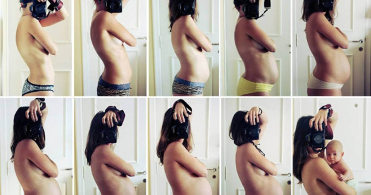 La serie de 'selfies' comienza desde su cuarta semana de embarazo y finaliza con su recién nacida en brazos.