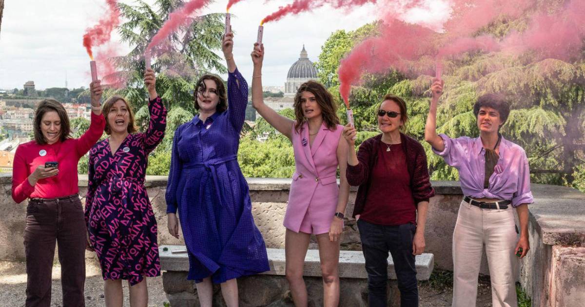 Las activistas se reunieron en un parque cercano al Vaticano, con la cúpula de la basílica de San Pedro de fondo, y, emulando el humo negro o blanco que miles de fieles esperan estos días en la plaza vaticana, lanzaron al aire una 'fumata' de color rosa para reivindicar una mayor representación de la mujer dentro de las instituciones católicas.