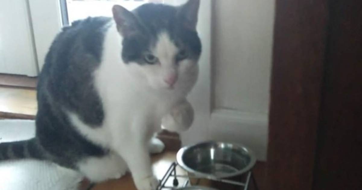 Un gato en Dinamarca da un nuevo enfoque al modo en que toma agua ya que moja su garra en el bowl y luego se lame.