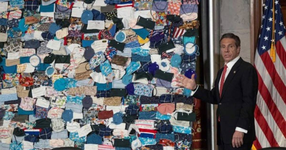 El gobernador demócrata de Nueva York, Andrew Cuomo, presentó este miércoles un 'collage' hecho con cientos de mascarillas de todo tipo que bautizó como 'Un retrato de EEUU' y que utilizó para cargar contra políticos del Partido Republicano, a los que acusó de estar 'envenenando' el país con la politización de la pandemia.