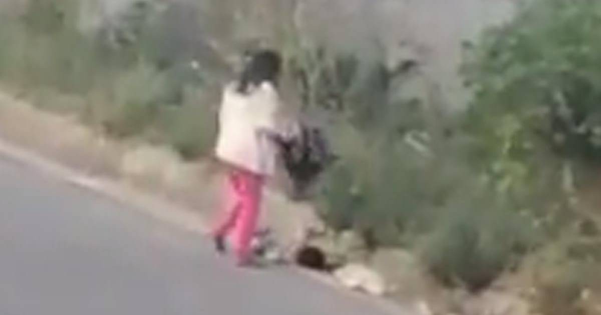 En el video se aprecia que, tras levantar de un jalón al menor al que pateó en el piso, el pequeño emprende una corta caminata junto a la mujer, quien le propina otro un golpe en la cabeza, por el que el niño vuelve a caer al piso, donde nuevamente lo agrede, hasta que cae a una cuneta, de la que lo saca de un nuevo tirón.