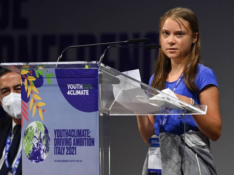 “No hay un planeta B, no hay planeta bla bla, bla bla bla, bla bla bla, economía verde bla bla, neutralidad de carbono para 2050 bla bla”, enfatizó bajo los aplausos de 400 jóvenes de todo el mundo reunidos en Milán por iniciativa de la ONU, un mes antes de la crucial conferencia climática COP26.