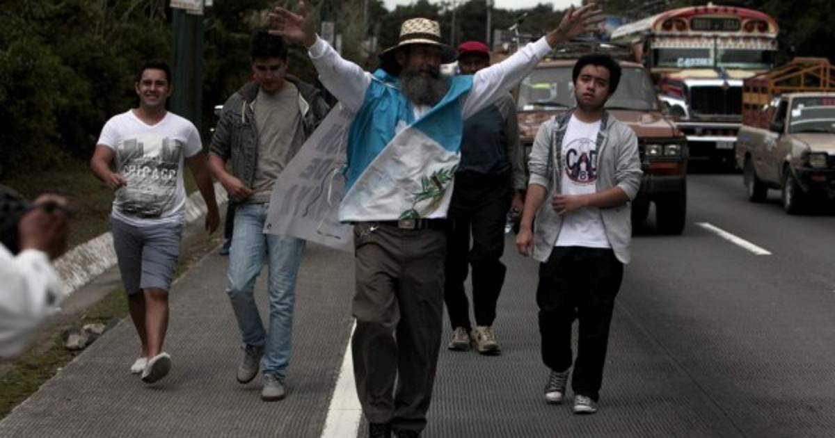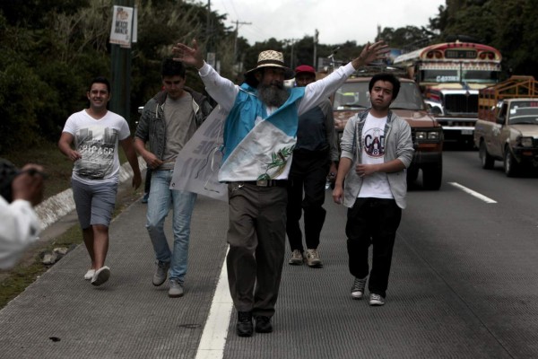 El manifestante, padre de siete hijos, salió el domingo pasado de la ciudad de Quetzaltenango, unos 200 km al oeste de la capital, en repudio por fraudes millonarios descubiertos desde abril pasado en el sistema de aduanas y el seguro social.