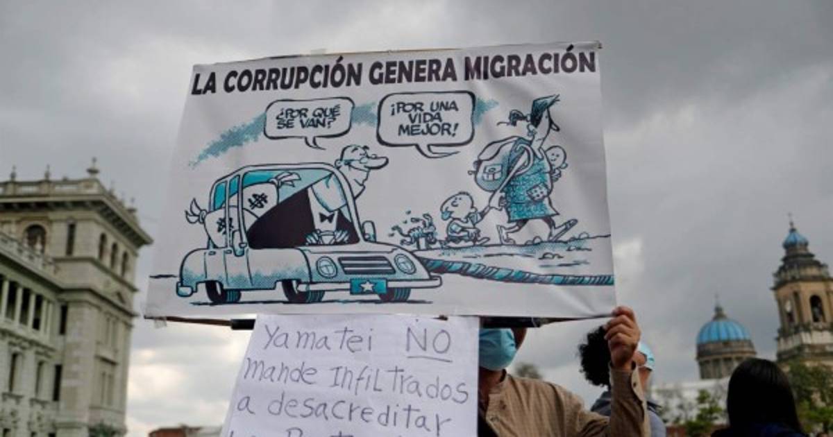 Otra de las consignas de los guatemaltecos fue 'La corrupción genera migración', dos de los temas que la vicepresidenta Harris ha anunciado que tratará con sus interlocutores en su estancia de casi un día en el país centroamericano.