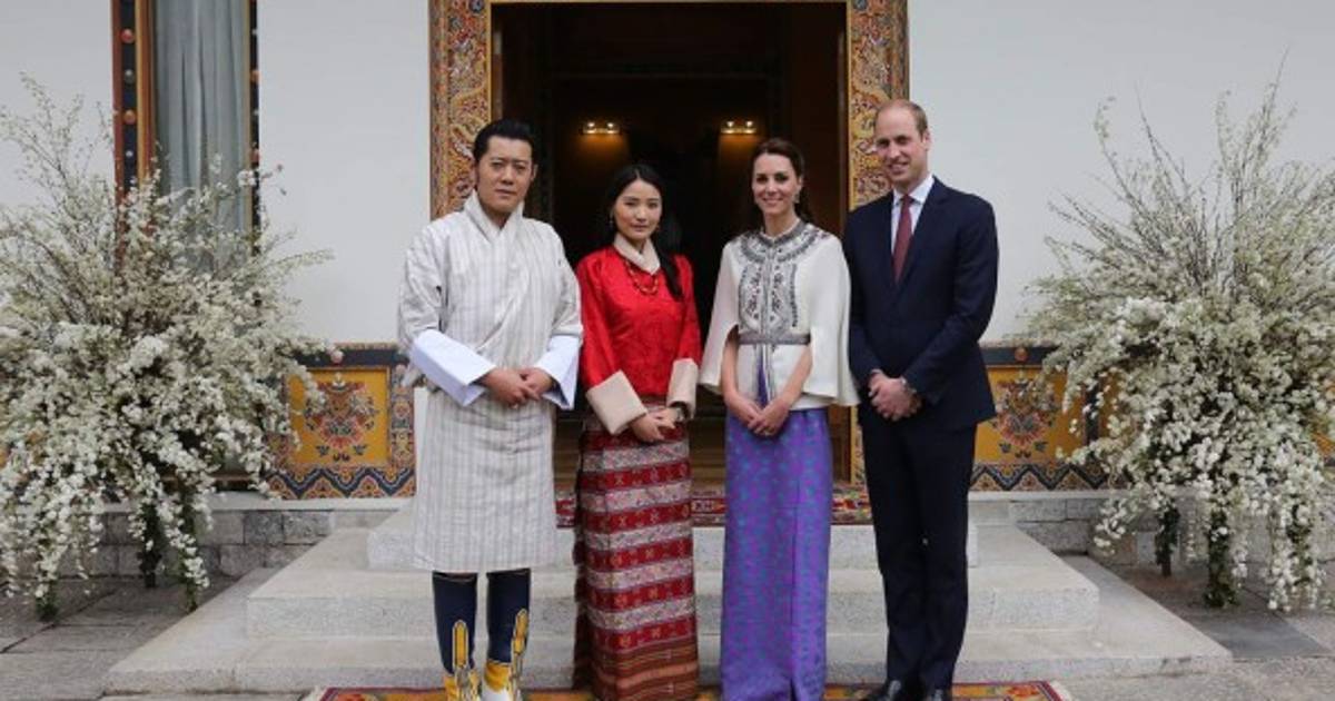 El monarca butanés, educado en Oxford y conocido como el Rey Dragón, recibió a la pareja británica vestido con el traje nacional, que aún es empleado obligatoriamente en la escuela y el trabajo.