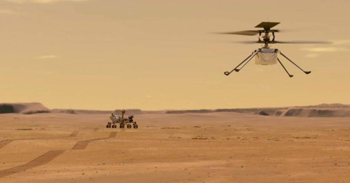 El momento fue captado por el rover Perseverance, ubicado a varios metros de distancia y en el que fue transportado el helicóptero desde que aterrizó en Marte el 18 de febrero, antes de separarse de él el pasado fin de semana.
