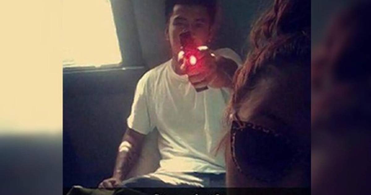 Hernández publicó una segunda selfie en Snapchat que muestra a su novio con el arma.