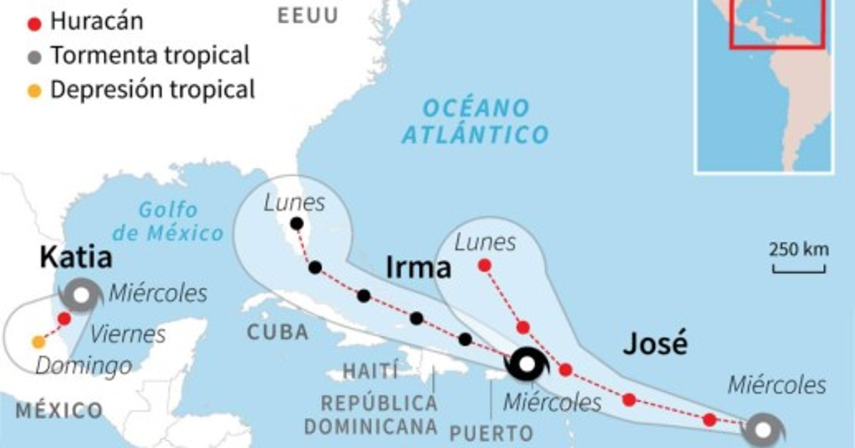 Por otra parte, el huracán Irma, de categoría 5 se desplaza hacia el oeste, afectando actualmente el Caribe y amenaza a Puerto Rico, República Dominicana, Haití, Cuba y el sur de Florida (EUA).