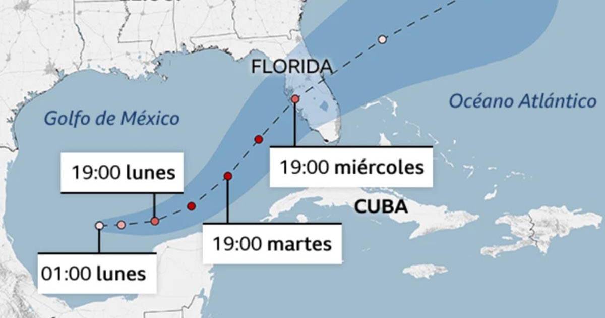 Se pronostica que el ojo del sistema impactará el miércoles por la noche en el área de la Bahía de Tampa, en el condado de Hillsborough, situado en el medio del cono del pronóstico de trayectoria.
