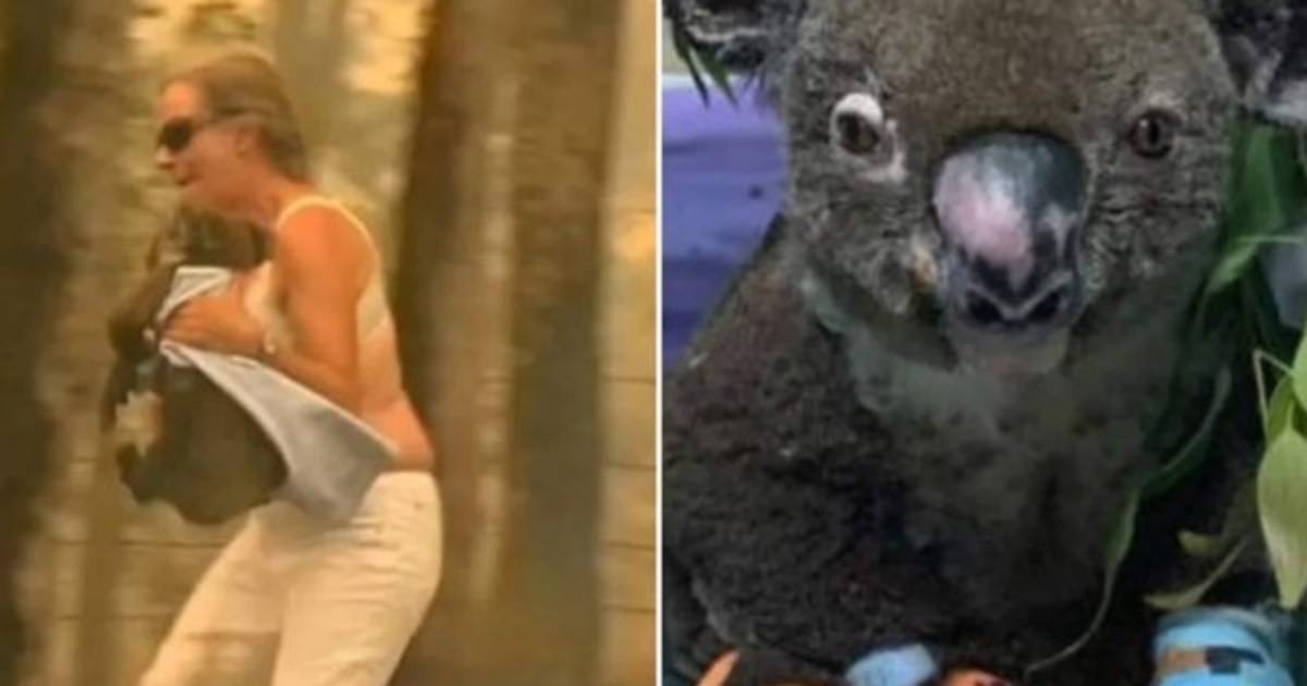 Su rescatadora se quedó en sujetador para enrollar al animal con su jersey y le roció con agua en el pelo chamuscado mientras el koala emitía alaridos de dolor.