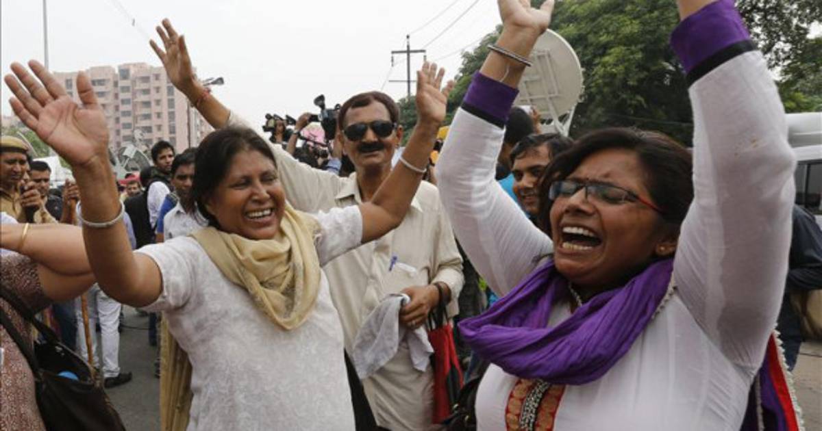 Uno de los convictos, el monitor de gimnasio Vinay Sharma, rompió a llorar tras escuchar la sentencia, que fue acogida entre vítores y aplausos tanto dentro como fuera del tribunal, en torno al cual se dispuso un fuerte dispositivo de seguridad.