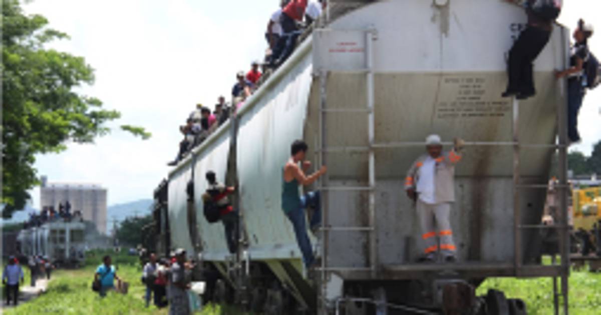 La locomotora es un tren de carga, denominado 'La Bestia' que opera en el este y sureste de México usado por inmigrantes indocumentados que abordan su lomo en su viaje a la línea divisoria entre México y Estados Unidos.