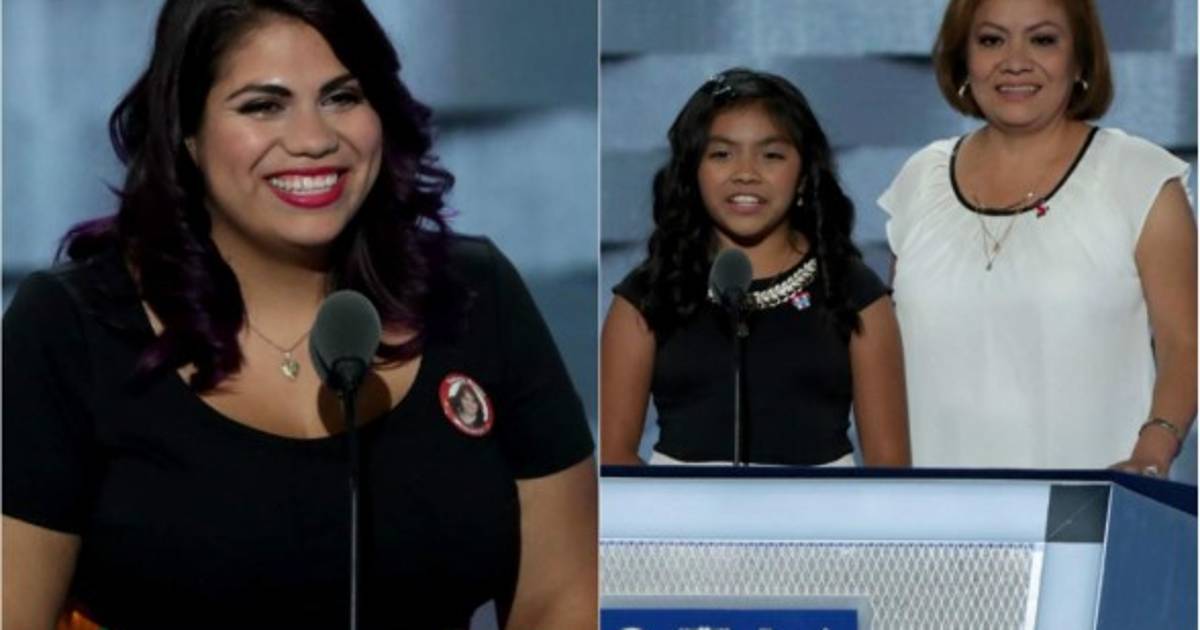 'Valiente. Así me llamó Hillary Clinton cuando le dije que estaba preocupada de que mis padres fuesen deportados. Desde que era pequeña, veía que mis padres siempre lloraban sin que yo entendiera por qué', contó la pequeña sobre el podio, donde fue recibida por los aplausos del público.