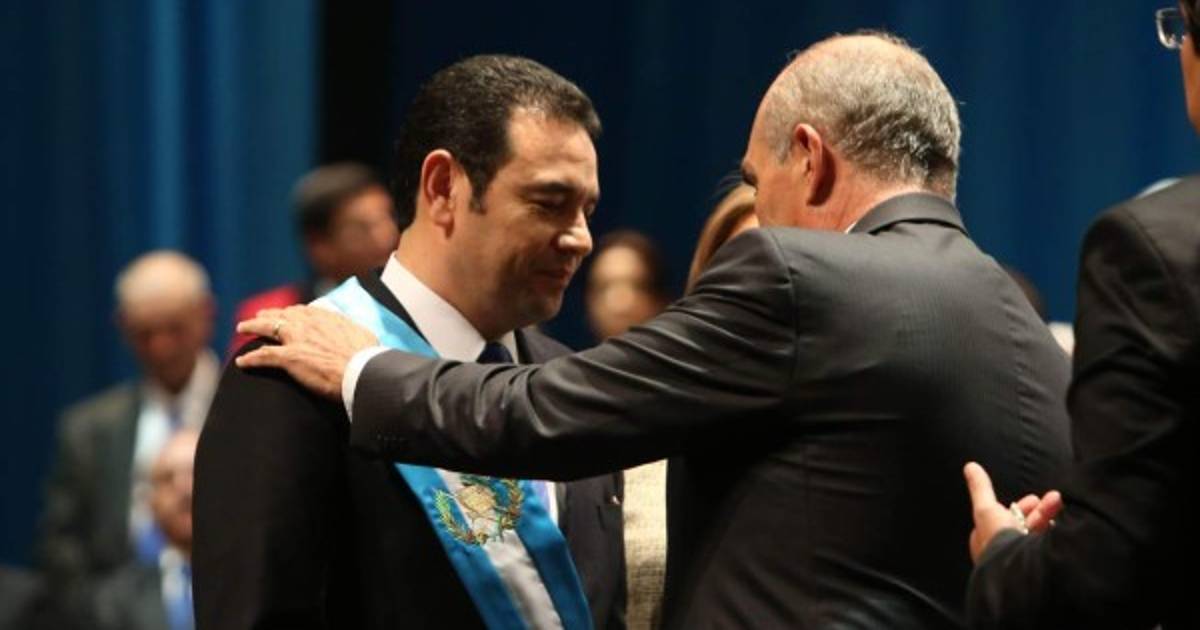 El político de 46 años acudió al Centro Cultural Miguel Ángel Asturias junto a su esposa, Gilda Patricia Marroquín Argueta de Morales, y antes de subir al escenario donde tomó la batuta de mando se fundió en un emocionante abrazo con su madre, que se encontraba entre el público.