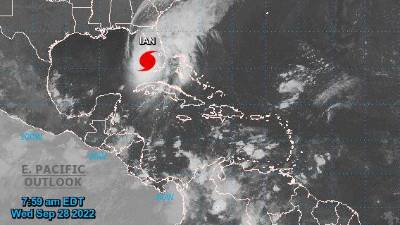 El huracán Ian, reforzado con vientos de 155 millas por hora (250 kilómetros/hora), correspondientes a la categoría 4 (de 5), se acerca este miércoles a la costa oeste de Florida a una velocidad de 9 millas (15 kilómetros), que se reducirá antes de tocar tierra.