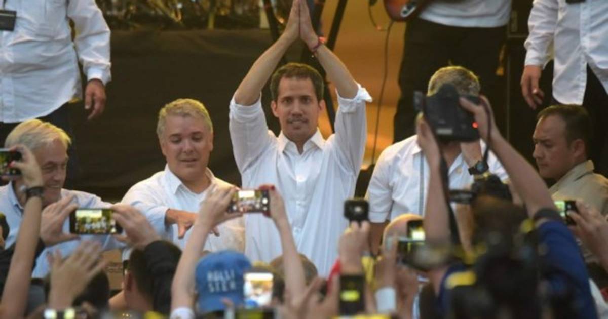 Guaidó se encontró con el presidente colombiano, Iván Duque, cerca de la tarima donde se realiza desde temprano el espectáculo convocado en favor de la entrada de ayuda esencial a Venezuela a partir de este fin de semana.