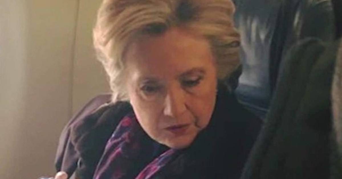Aparentemente es una foto normal de Hillary Clinton leyendo un periódico en un avión.