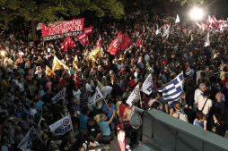 Alrededor de él, la gente llega de todos los sitios: periodistas, estudiantes, militantes políticos o simples vecinos, anonadados por las noticias y apoyar al personal. A principios de la noche, todo el mundo pensaba que los trabajadores de ERT iban a organizar la resistencia, mantener la antena y el control de la situación, pese al decreto presidencial que autoriza el cierre de la entidad.