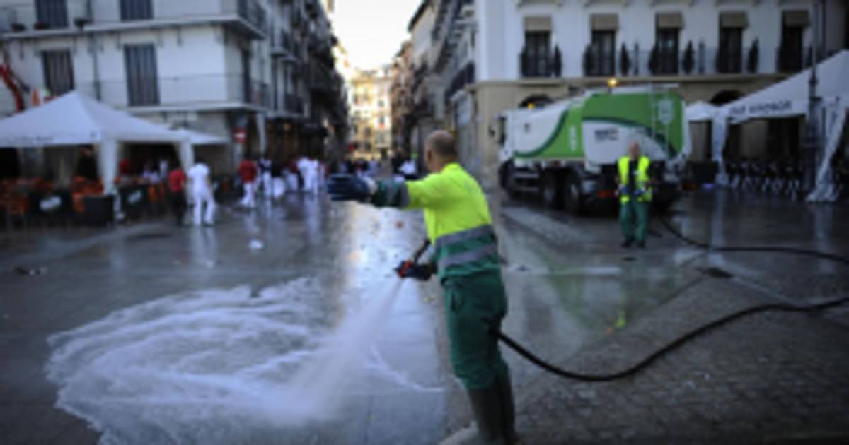 No es nada fácil la limpieza de esta ciudad del norte de España que vive noche y día al ritmo de los Sanfermines, inmortalizados por el escritor Ernest Hemingway en su novela ‘Fiesta’ (The sun also rises) de 1926. La fiesta no se limita a las carreras de los mozos delante de los toros, que reúnen a miles de turistas y apasionados cada mañana a lo largo de una semana, sino que se prolonga hasta la noche en los bares abiertos hasta las 6:00 am.