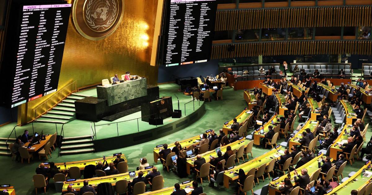 A iniciativa de Estados Unidos y sus aliados, la Asamblea General de Naciones Unidas aprobó esta medida con 93 votos a favor, 24 en contra y 58 abstenciones.