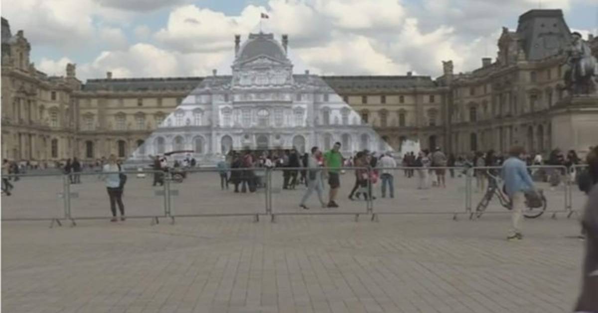 Aparentemente la pirámide del Museo Louvre en París desapareció. Se trata de una instalación del fotógrafo francés JR, quien utilizando el principio de distorsión anamórfica cubrió la pirámide con una fototografía de la fachada del edificio histórico del museo.