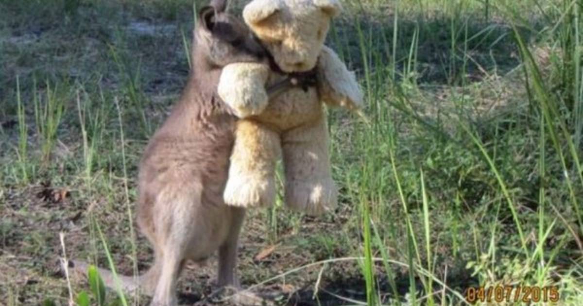 Un tierno y conmovedor abrazo es la nueva imagen viral en las redes sociales y sus protagonistas increíblemente son un canguro y un oso de peluche.
