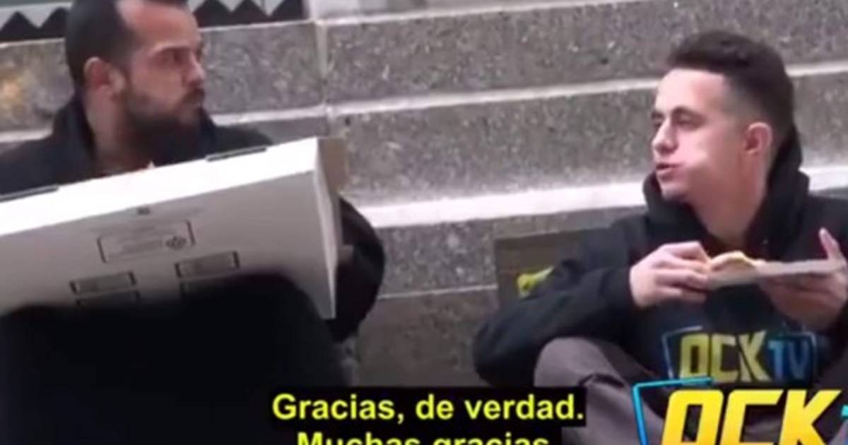 El pobre hombre sin dudar y sin condición le compartió de la pizza que le habían regalado, la recompensa por su acción lo conmueve a tal manera que llora desconsoladamente, seguramente fue su mejor experiencia.