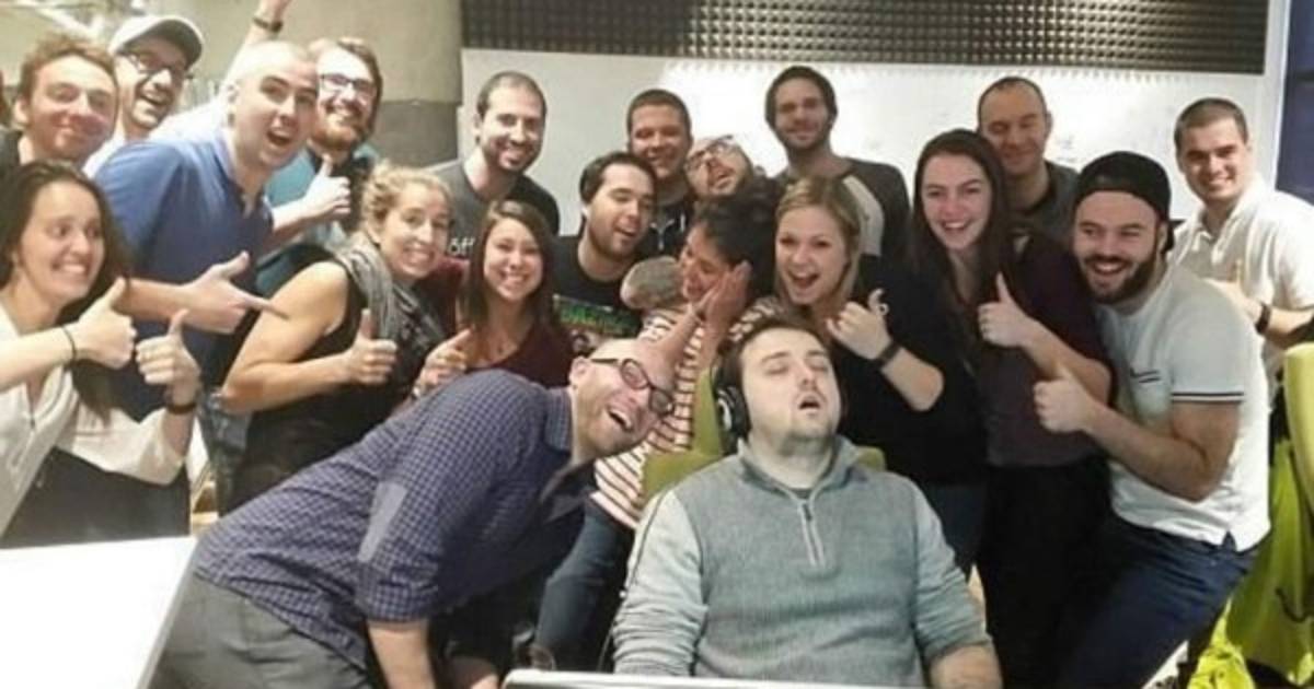 Sus compañeros tomaron la situación con humor y decidieron tomarse una fotografía junto a él.