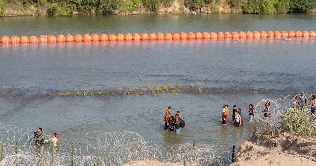 En mayo pasado, a unos días del fin de la medida migratoria conocida como Título 42, el gobernador de Texas anunció el comienzo de la colocación de boyas esféricas gigantes, color naranja, para construir una barrera flotante sobre el río Bravo.