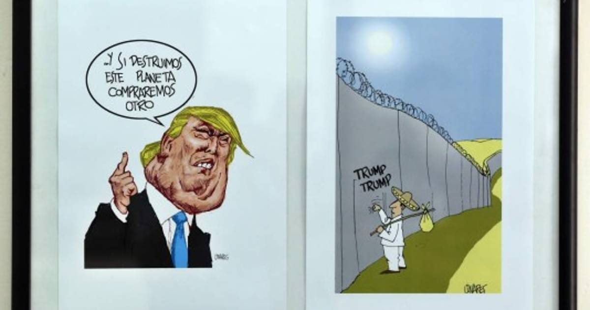 Además del dibujo de Trump vestido como el Tío Sam contra Cuba, Linares ha ilustrado al polémico mandatario comprando un planeta nuevo tras destruir el actual o subido sobre el muro que quiere construir en la frontera con México.