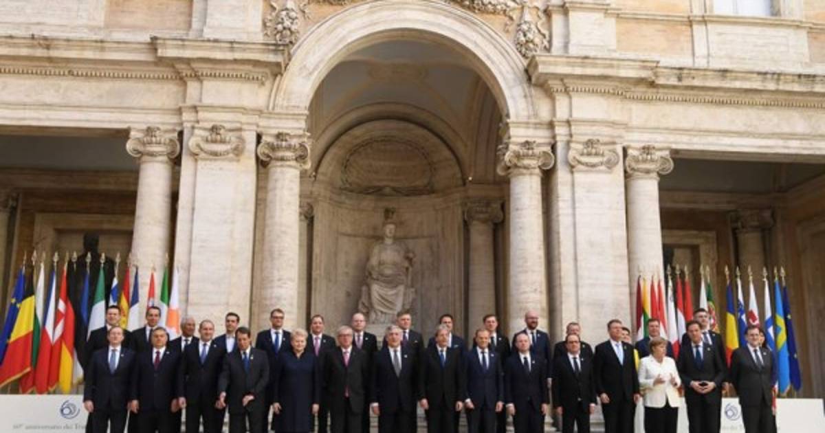Los líderes de 27 países de la Unión Europea, todos salvo el Reino Unido, firmaron hoy, con motivo del 60 aniversario de la UE, la 'Declaración de Roma', que subraya la unidad e indivisibilidad de los Estados miembros y la voluntad de seguir avanzando en el proyecto europeo.