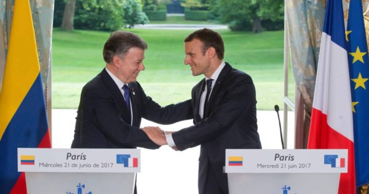 'Estamos dispuestos a ayudarlos a consolidar la paz', agregó el presidente francés, quien anunció el desbloqueo de 350 millones de euros en créditos y créditos no reembolsables para apoyar el posconflicto.