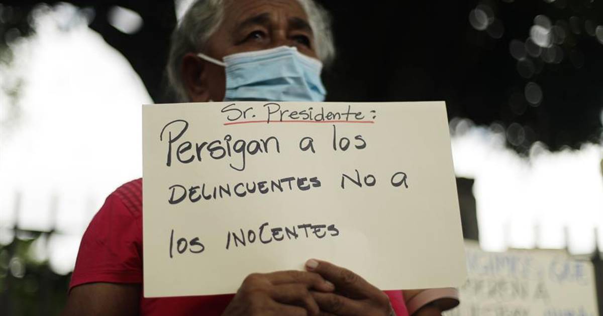 “Soy trabajador, no pandillero”, “Exigimos que liberen a nuestros hijos”, “¡Alto a las detenciones arbitrarias!” y “basta de perseguir a jóvenes inocentes ¡Liberad!”, se leía en los carteles que portaban.