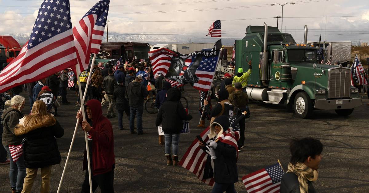 Cientos de camioneros y otros estadounidenses llegaron muy temprano este miércoles a Adelanto, California, para iniciar una caravana de casi 4,200 kms hasta Washington, en el otro extremo del país, en protesta por las medidas restrictivas contra la pandemia.