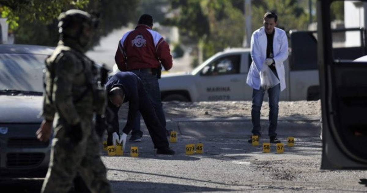 Los peritos 'localizaron a cinco civiles del sexo masculino sin vida, todos ellos jóvenes, que portaban chalecos tácticos, cargadores y fusiles AK-47 y AR-15, quienes presentaban impactos de bala en distintas partes del cuerpo', añade el parte, al precisar que un elemento de la Marina también falleció 'por las mismas causas'.