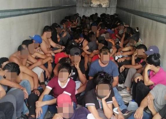 En Coahuila, agentes del INM y de la Policía de Investigación del estado hallaron 127 extranjeros -principalmente nicaragüenses- que viajaban hacinados en un tractocamión sobre la carretera federal 57 tramo Monclova-Piedras Negras.
