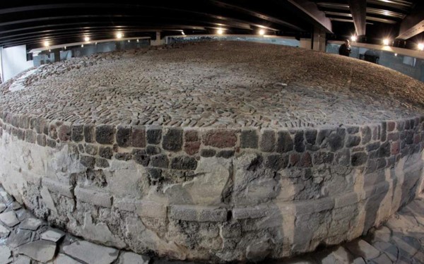 En 2014, durante la demolición de un antiguo supermercado, se encontró la estructura del templo, consistente en una plataforma de más de 650 años de antigüedad, que mide 11 metros de diámetro y 1,20 metros de altura, a tres metros de profundidad del nivel de la calle, con cerámicas y 20 entierros de niños, adultos y animales.