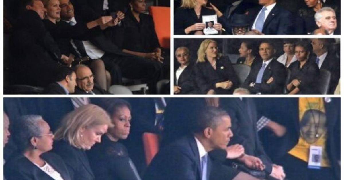 Obama, el primer ministro británico, David Cameron y la ministra de Dinamarca aprovecharon la oportunidad de tomarse una 'selfie' (una auto-foto) durante el homenaje a Nelson Mandela.