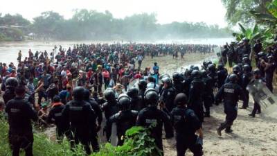 Las autoridades mexicanas blindaron su frontera con Guatemala para contener el paso de miles de hondureños luego de un enfrentamiento el domingo que dejó un migrante muerto por el impacto de una bala de goma, pero el bloqueo no resultó efectivo.
