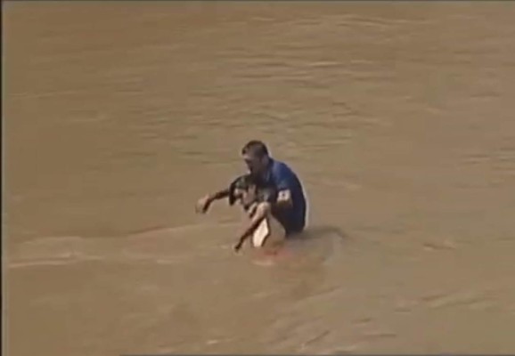 | Imagen del momento el hondureño es rescatado.