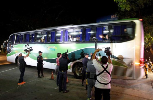 Los cuatro autobuses que transportan a los isleños ingresaron por el puesto fronterizo de Pedro de Alvarado, unos 150 km al sureste de Guatemala, y luego continuaron viaje hacia la frontera con México en Tecun Uman.
